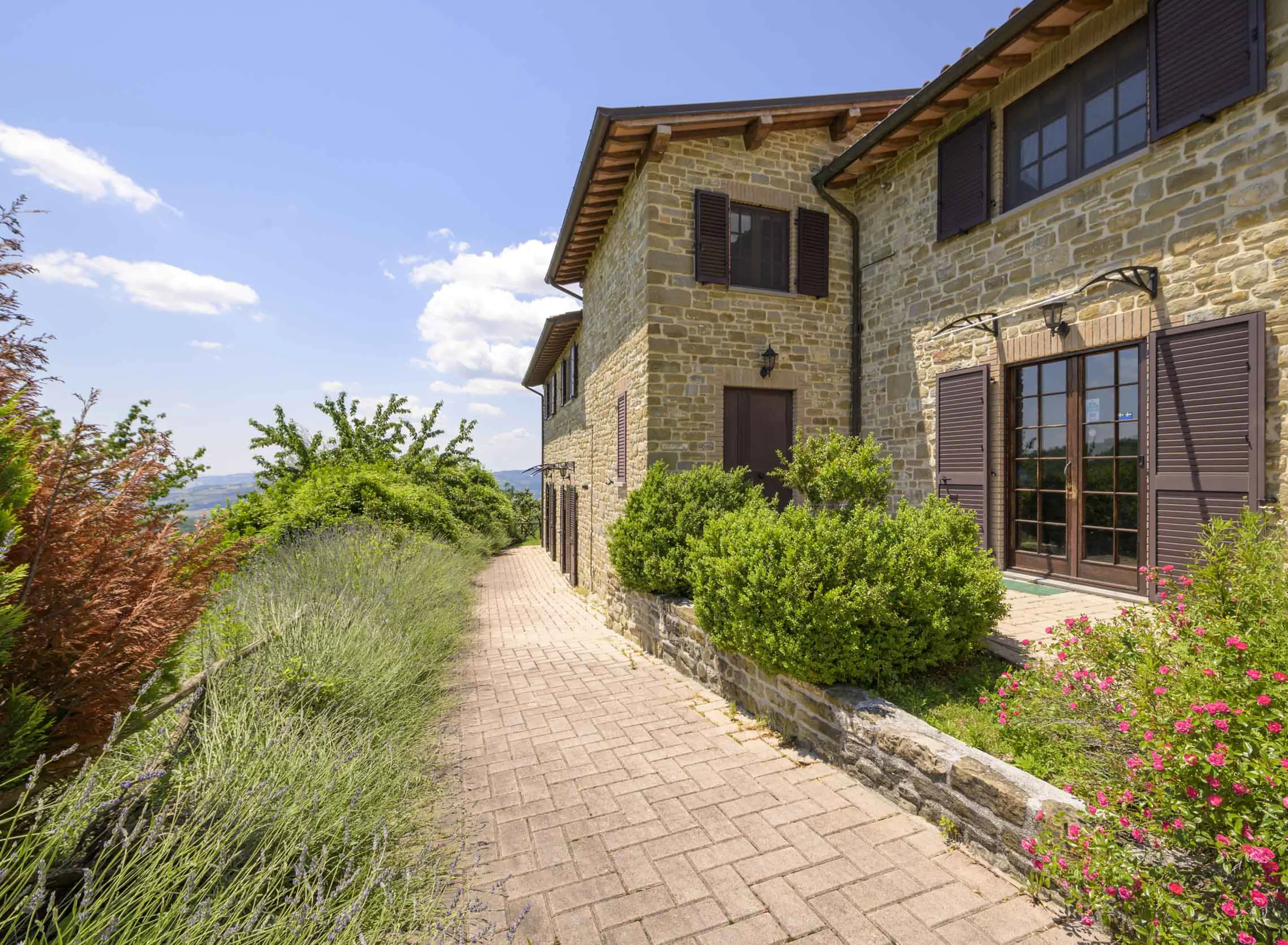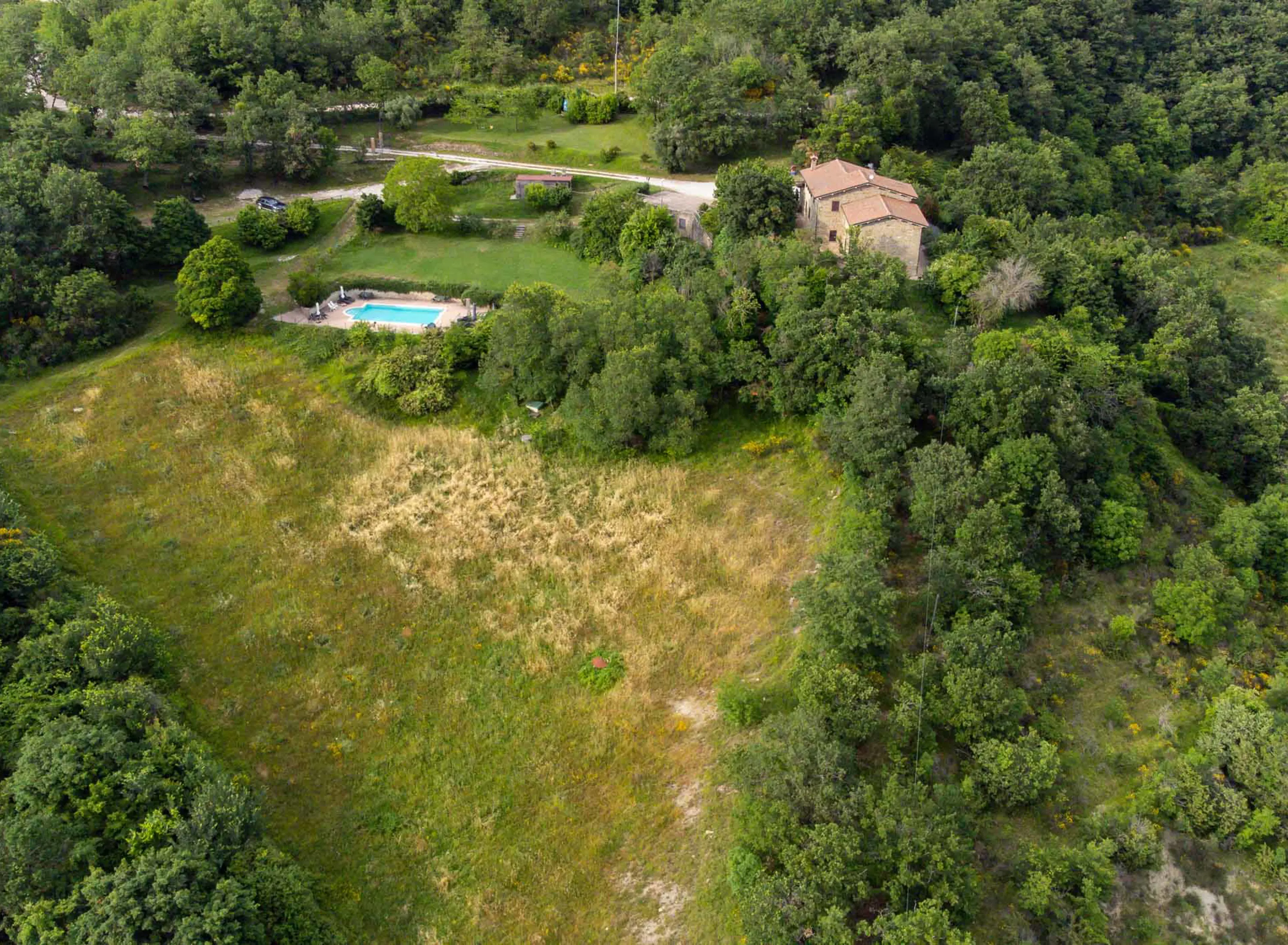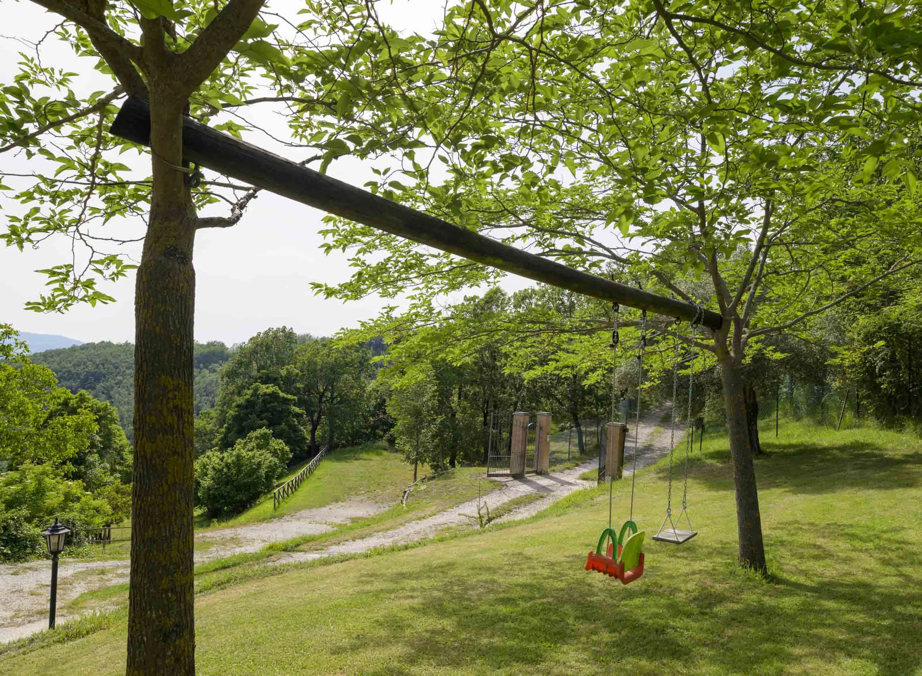 Esternamente troviamo un bellissimo ed ombreggiato giardino dove poter vivere momenti di assoluto relax ed una grande piscina con una bellissima vista panoramica sulla vallata eugubina. A rendere questa struttura agrituristica una vera oasi di pace e tranquillità oltre al bellissimo verde e curato parco circostante, troviamo un laghetto sorgivo incastonato tra una dolce collina.